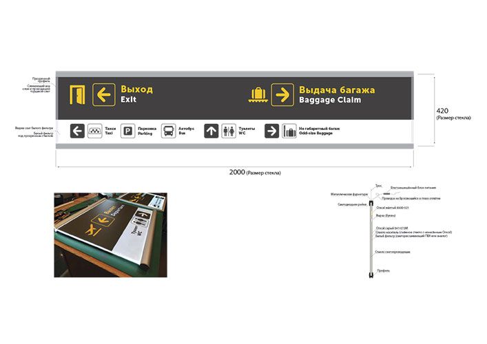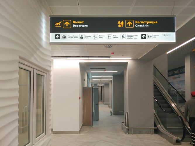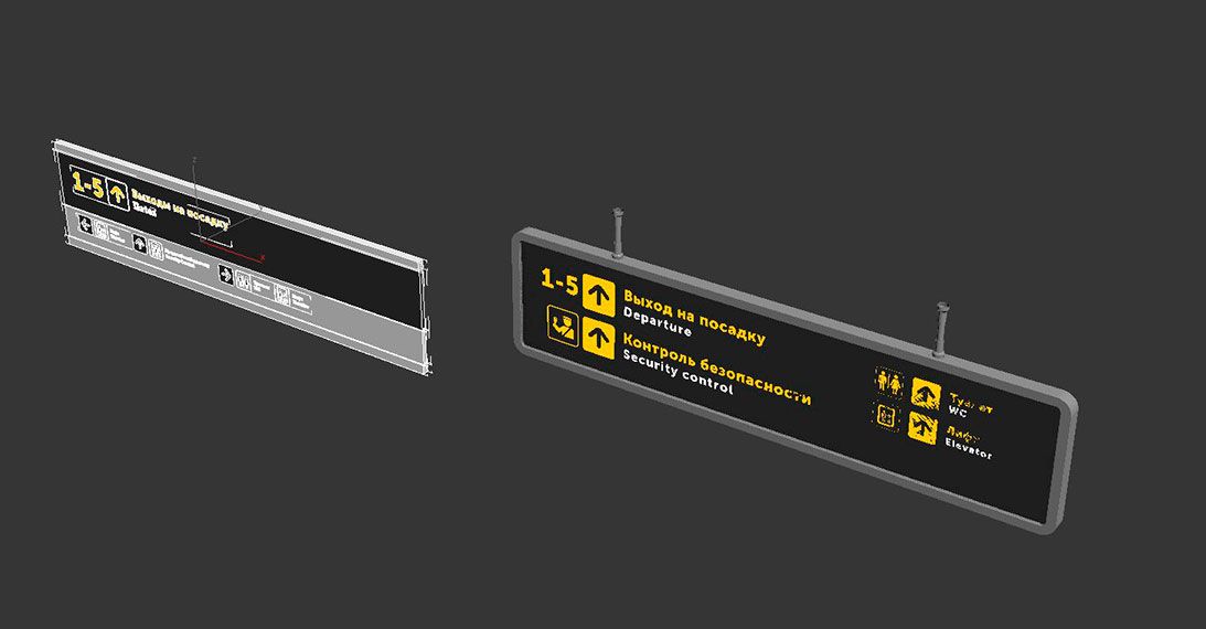 Большой крутой проект. Главная отличительная особенность — указатель туалета на каждой табличке. Так же нашей командой в макетной мастерской была разработана технология внутренней подсветки.